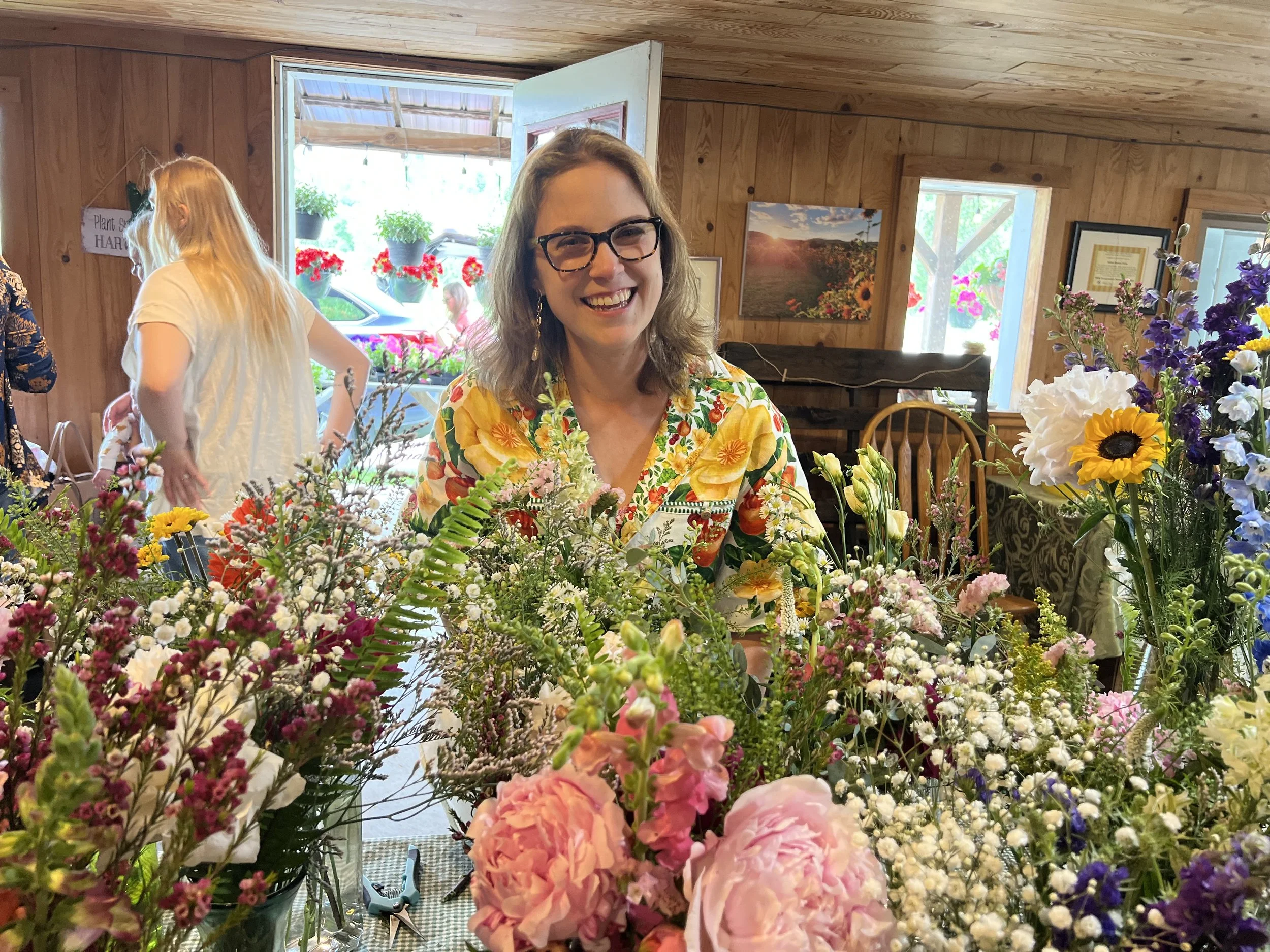 Are you laid back and more into buying memories and experiences than flower arrangements? Join us at the farm or in our flower shop for a one of a kind experience with your closest family and friends. July-September we offer on the farm Pick-Your-Own Parties. You’ll be greated at our farm stand where you can enjoy light refreshments, then once your group has fully arrived we’ll set you up with buckets and flower snips to pick your own flowers. Looking for a certain color pallette or flowers? No problem, we’ll direct you where you need to go or bring in specific flowers for you to add in! Once your flowers are picked we’ll give you a brief demonstration on how to create your bouquets or centerpieces. Then you can create and chat and enjoy your time. In the off season we also offer this experience at our Flower Shop in Jeffersonville at the Granary. The off-season package is more of a Build-Your-Own experience and includes the refreshments, demonstration and flowers (with-out the pick-your-own).